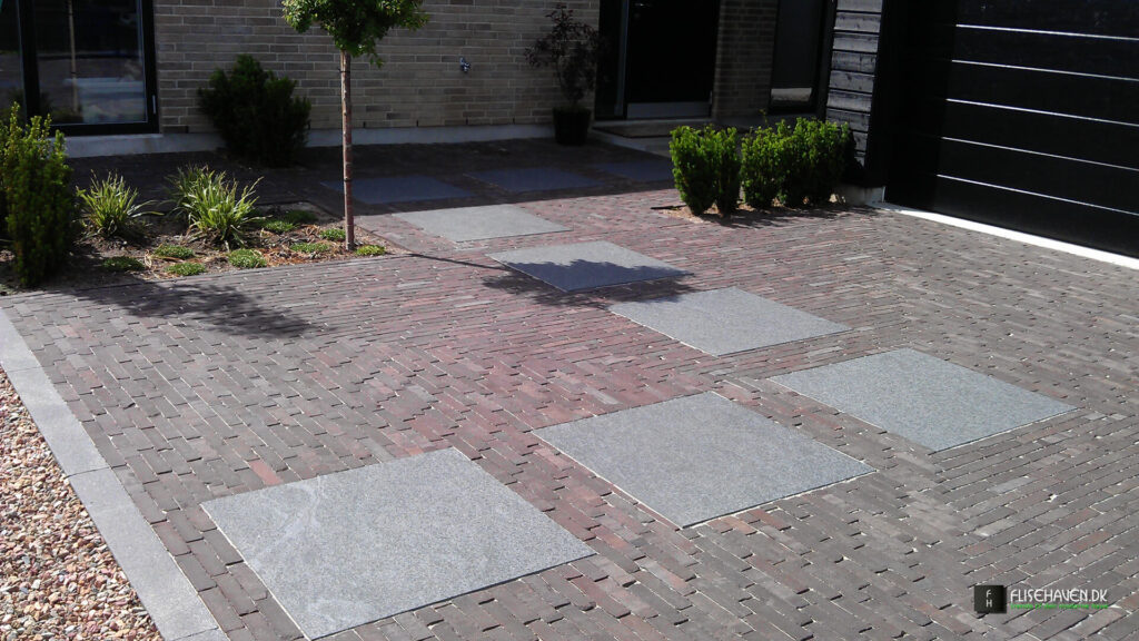 Vi kan fremvise mange forskellige anvendelses- og designmuligheder med hårdtbrændte klinker til indkørsel i vores showroom i Vejle.