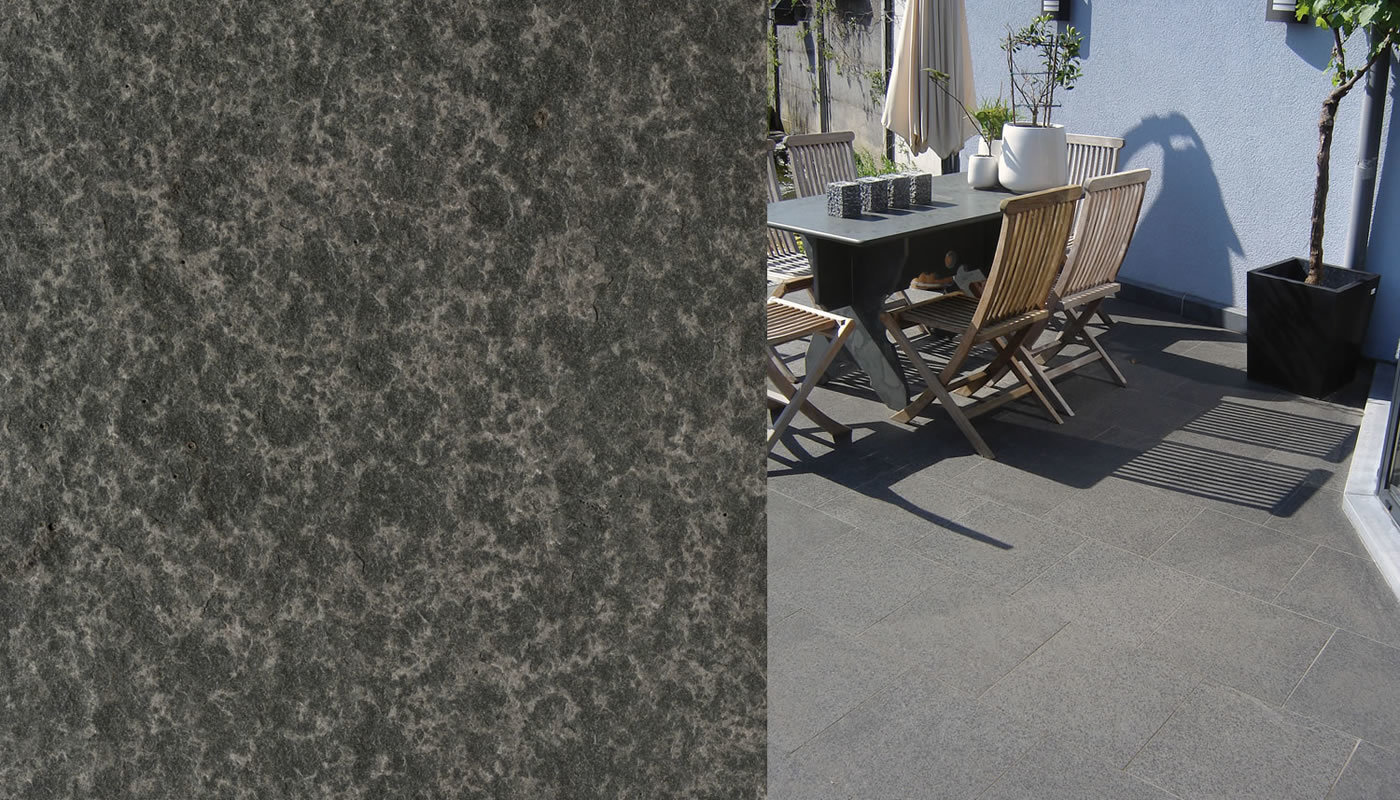 Basalt er et sikkert flisevalg, som giver rigtig mange års glæde da de kræver minimal vedligeholdelse. Basalt stenen kommer i dybe, mørke og koksgrå nuancer. De er ekstremt frostsikre og har en lukket overflade.