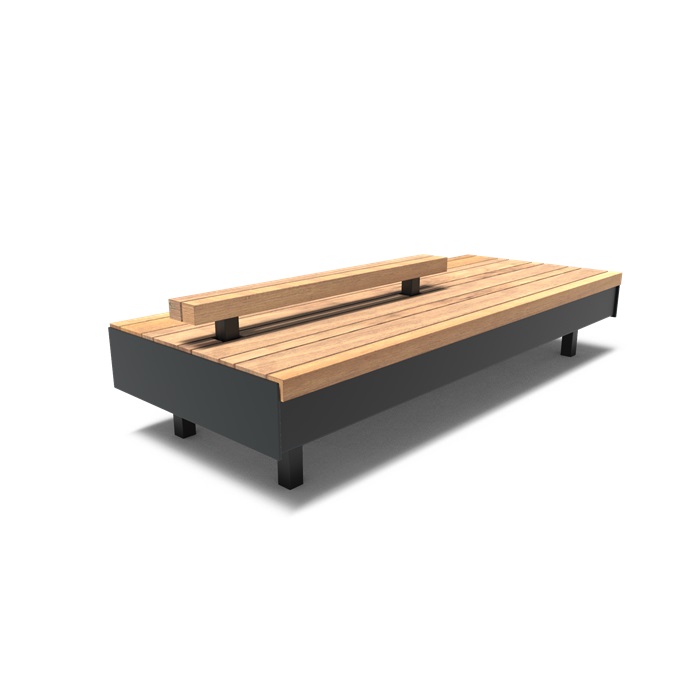 Aros dobbeltsidet bænk med ryglæn i sort coatet stål og garapa hårdttræ