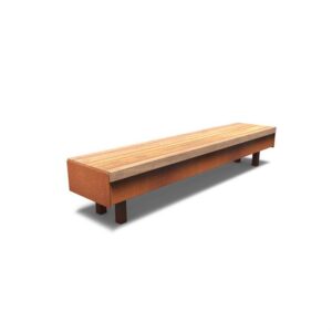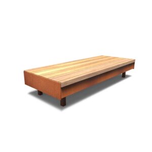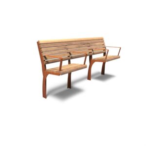 Aros dobbeltsidet bænk med dobbeltryglæn i cortenstål og garapa hårdttræ