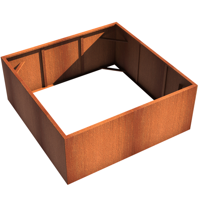 Andes uden bund er en eksklusiv firkantet plantekumme i cortenstål. Plantekummen er en variation af Andes designet, hvor bunden er udeladt, så planter med dybe rodnet såsom træer kan gro.