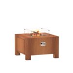 Bålstedet er fremstillet i det karakteristisk rustfarvede cortenstål, der desuden er kendt for sin exceptionelle modstandsdygtighed overfor vind og vejr. Cortenstål er en legering af jern, kobber, silicium, nikkel og krom, som i løbet af 5-6 måneder opretter en stærk ydre barriere af rust, der beskytter produktet mod vind og vejr i mange år.